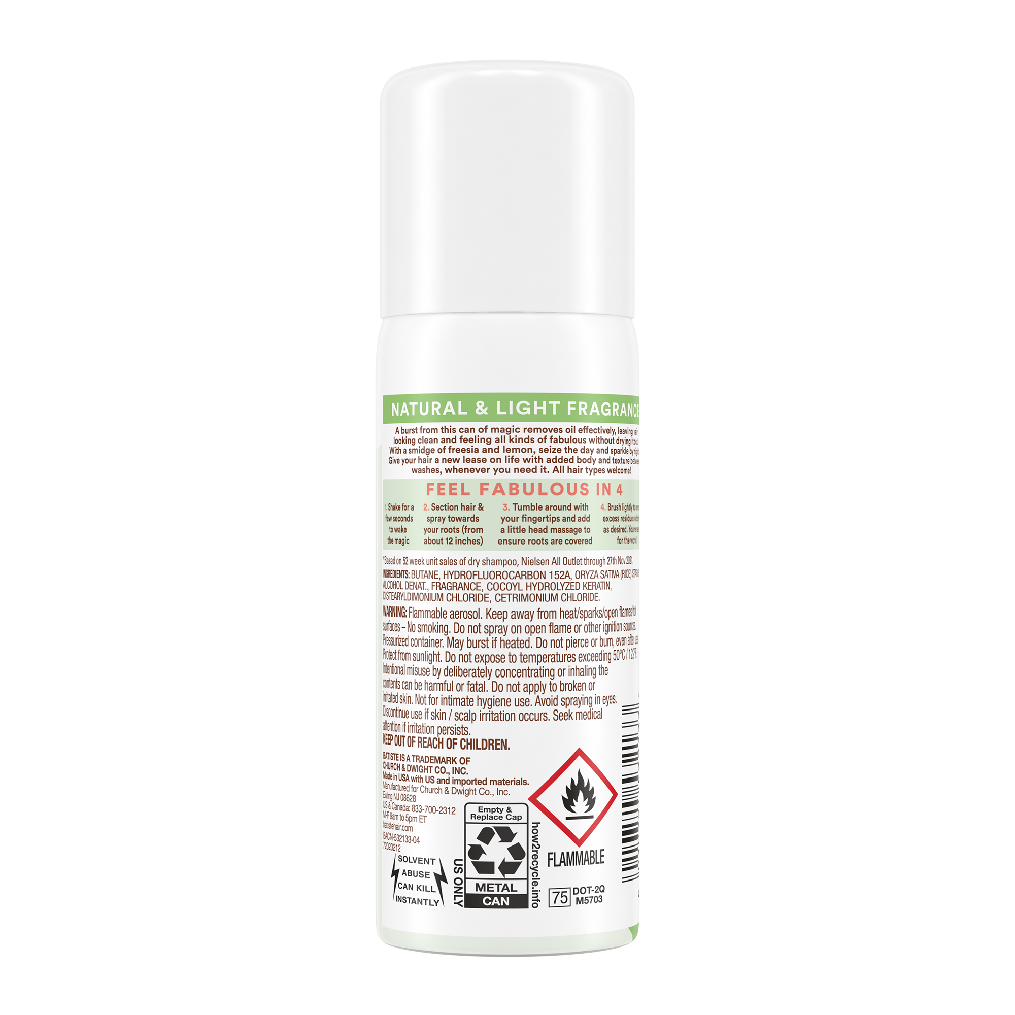 Instantly refreshes hair between washes.