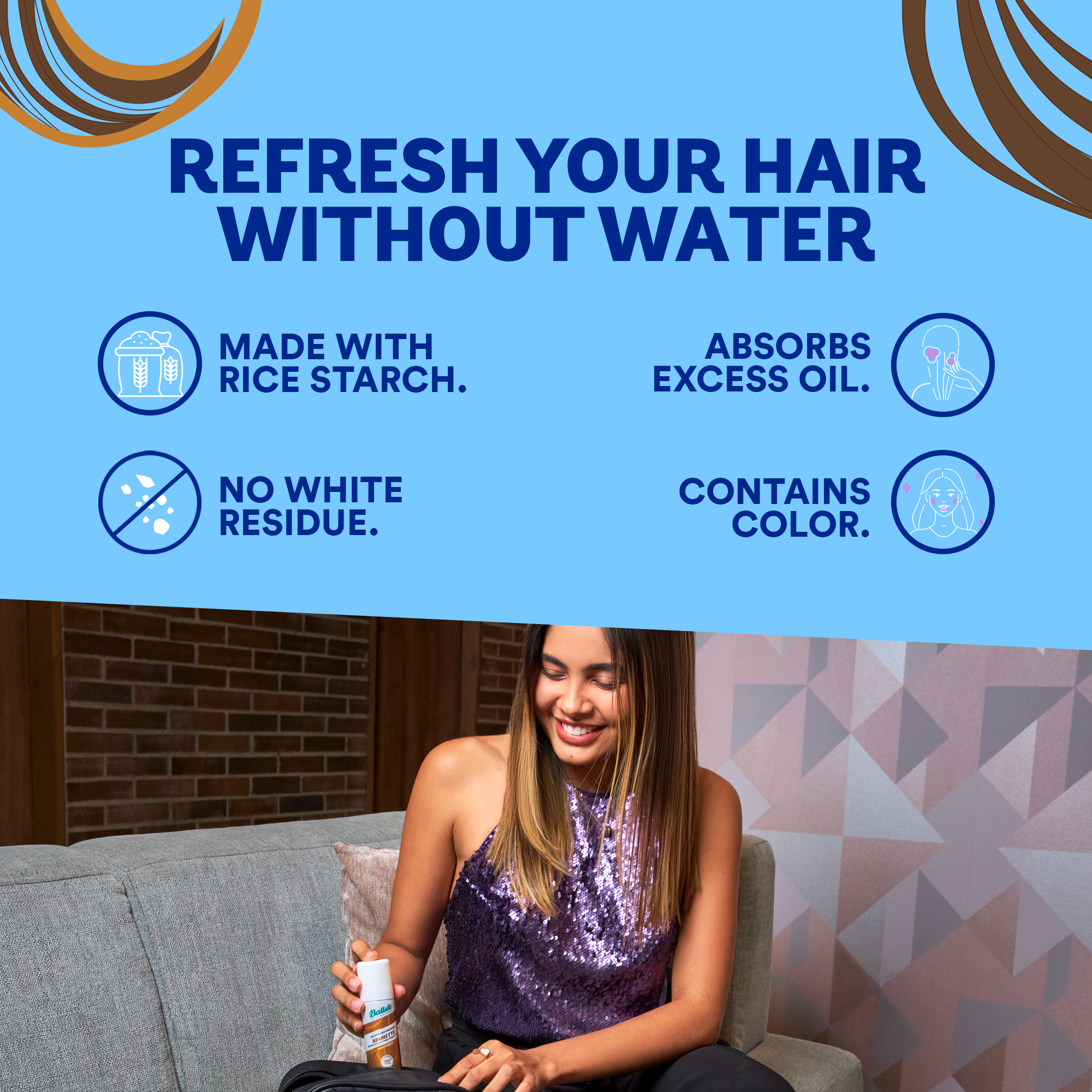 Instantly refreshes hair without residue.